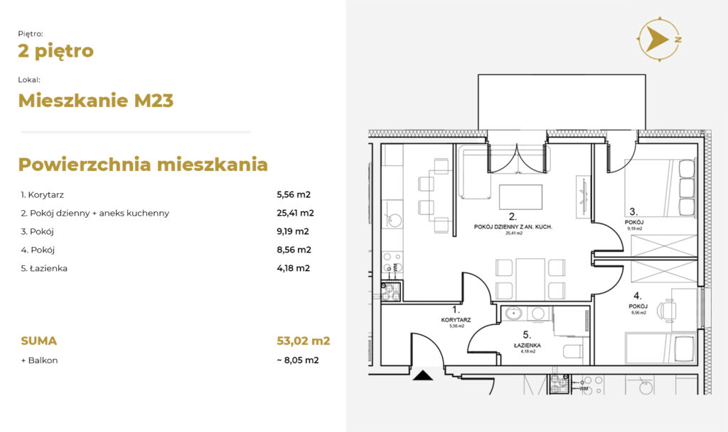 Powierzchnia mieszkania53.01 m2