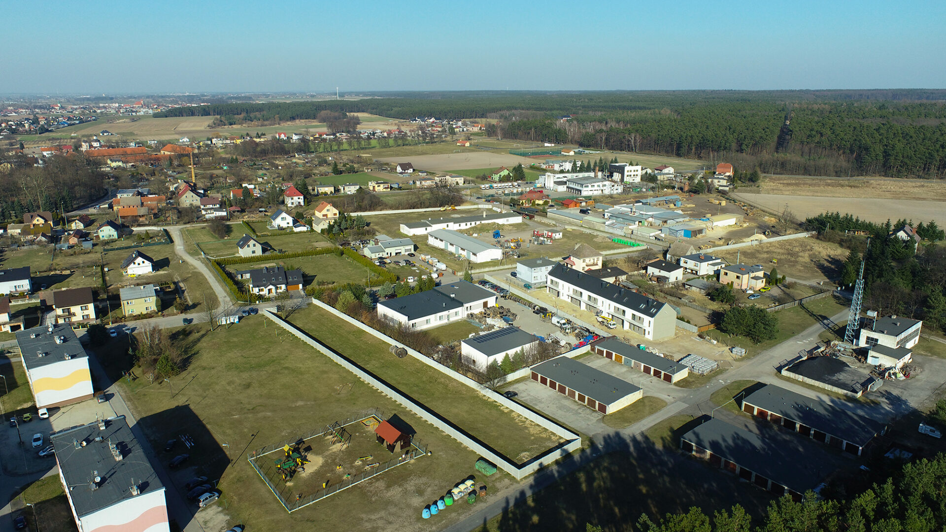 W niedalekiej odległości znajduje się także ośrodek sportowy, dzięki czemu mieszkańcy mają łatwy dostęp do rekreacji i aktywności fizycznej.