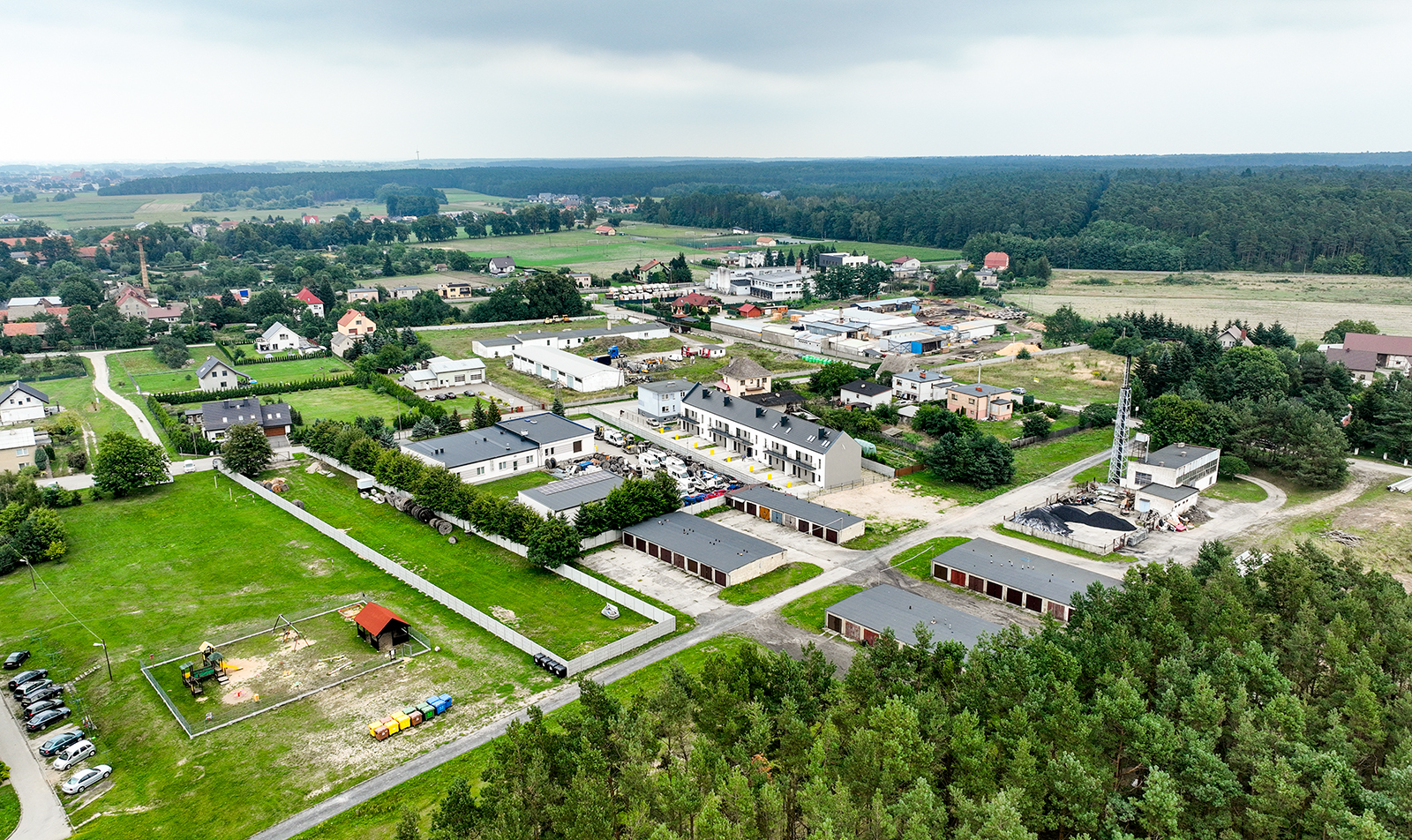 Dużym atutem inwestycji jest bliskość lasu, która sprzyja spacerom i aktywnemu wypoczynkowi w otoczeniu natury.